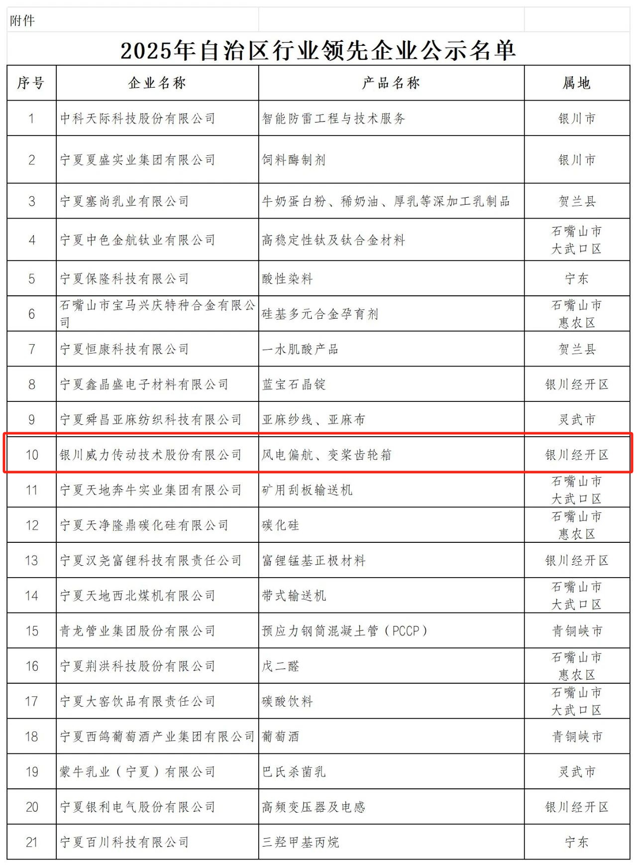 喜訊 | 威力傳動榮膺2025年自治區(qū)行業(yè)領(lǐng)先企業(yè)